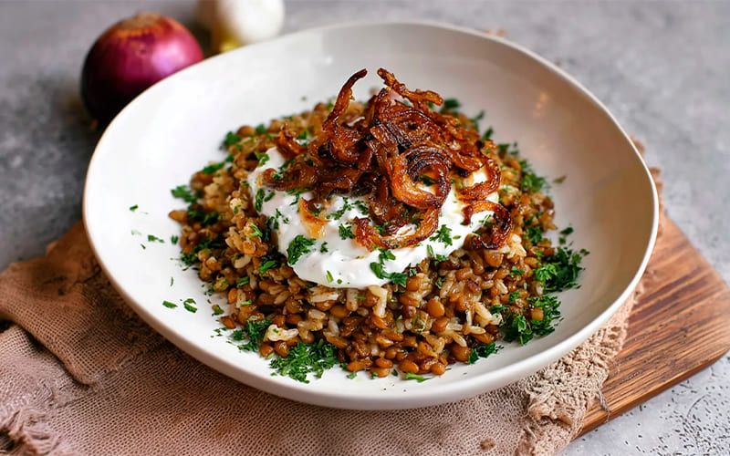 La mujaddara es un plato tradicional de la cocina libanesa y palestina, conocido bajo distintos nombres como mejadra, mudardara o myadra. A base de lentejas, arroz o bulgur, cebolla y especias, esta preparación ancestral se ha extendido por todo el mundo gracias a su sabor...