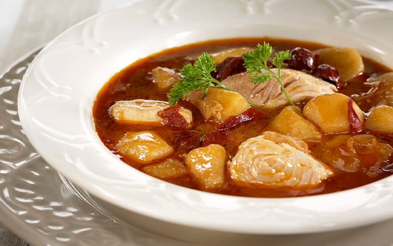 Marmitako: Guiso marinero de bonito con papas, pimiento y tomate, ideal para los meses fríos.