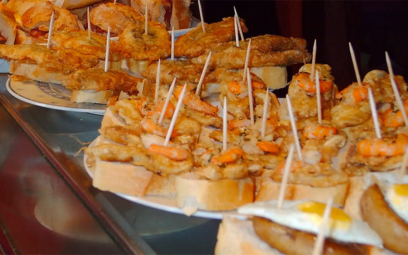 Pintxos tradicionales: Pequeñas porciones servidas en bares, que van desde tortillas y croquetas hasta combinaciones modernas.