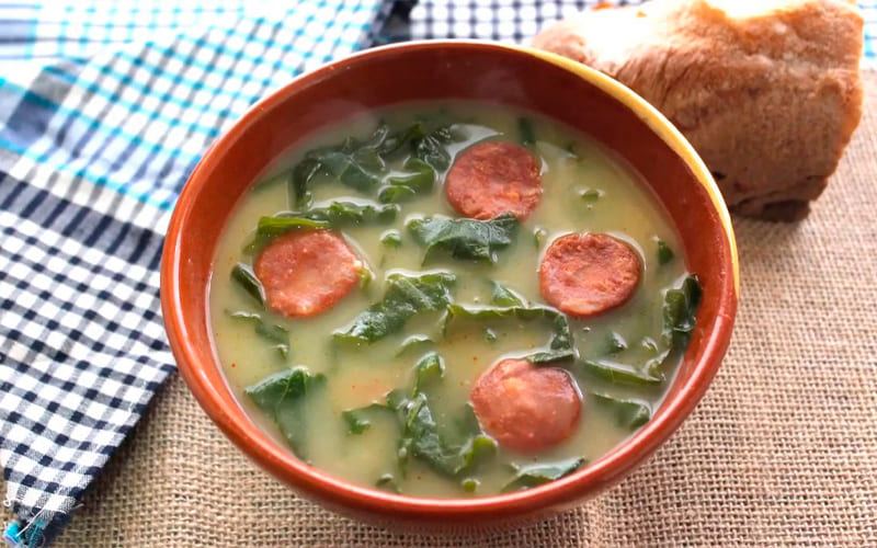 Durante el invierno, el plato nacional es el caldo verde, una sopa tradicional del norte de Portugal elaborada con couve galega, papa y embutidos. Suele acompañarse con broa de milho, un pan de maíz de corteza gruesa, y un vino verde fresco.