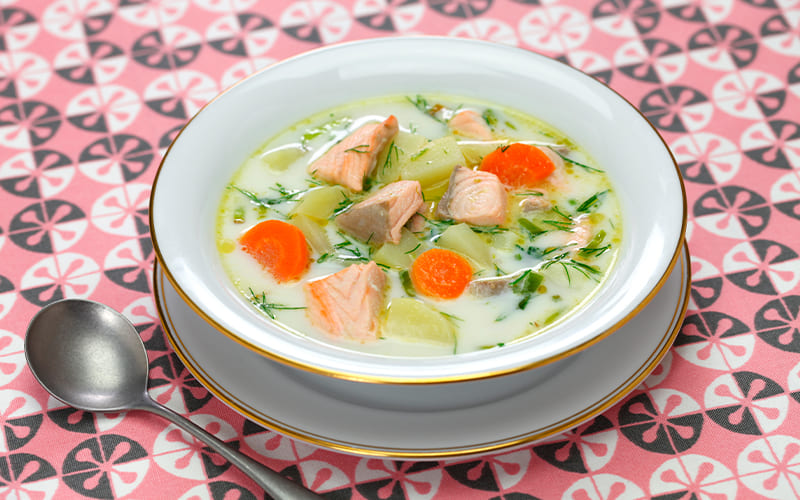 Desde las costas frías de Dinamarca llega esta tradicional sopa de pescado, un plato reconfortante que combina la frescura del mar con la calidez de los vegetales cocidos a fuego lento. En la gastronomía danesa, las sopas ocupan un lugar importante, especialmente durante el invierno, y esta versión destaca por su sabor suave, aromático y profundamente hogareño. El pejerrey, junto con el perfume del azafrán y el dulzor natural de las zanahorias, crea una preparación simple pero llena de carácter, ideal para disfrutar en días fríos o como entrada de una comida especial.